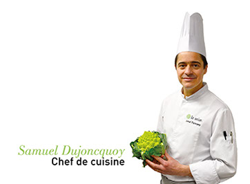 Des légumes, des fruits et des plantes en provenance de notre jardin en permaculture ou régionaux, des produits laitiers et de la viande Suisse, du poisson du lac Léman ou labellisé MSC. Nous privilégions le commerce de proximité, et visons l'objectif "zéro déchet".
